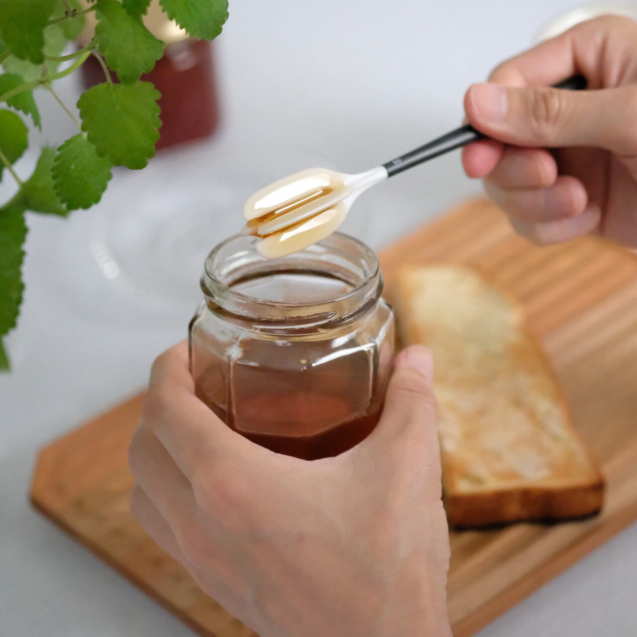 「たくさんすくえて、切れが良い。ハチミツの成分を変えない。ジルコニアのハニーディッパー」